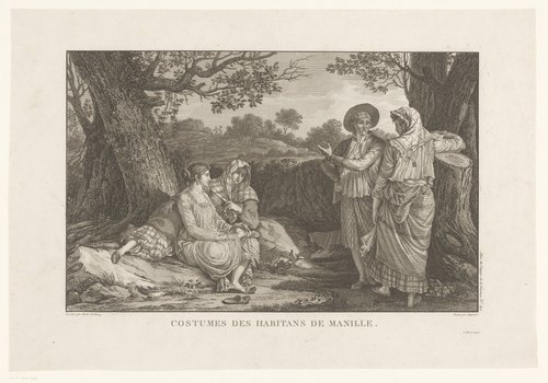 Landschap met figuren in traditionele klederdracht