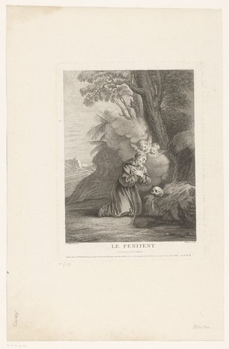 Franciscaan geknield bij een schedel