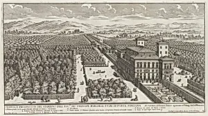 View of the side facade of the Palazzo Pamphili and its garden (Secondo prospetto per fianco del palazzo con diversa veduta del giardino del Bel respiro...Pamphilio)