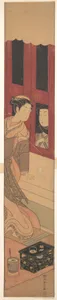 Harunobu's early prints followed the prevailing benizuri-e style—prints using two or three colors (typically rose-red and green) over black outlines. His subjects included actors and beautiful women in the established ukiyo-e manner.