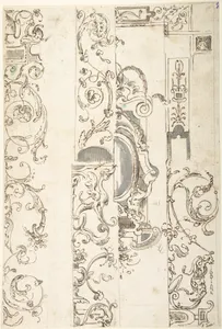 Sheet with Various Studies of Candelabra Grotesques, Foliage and a Cartouche