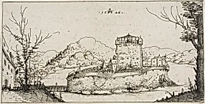 A polymath, Hirschvogel pioneered triangulation for surveying, creating Vienna's first scaled etched views (1547) and a circular city plan after the 1529 Ottoman siege; he mapped Turkish borders (1539) and Austria (1542) for Ferdinand I, earning a pension. Other landmarks include armorials for Franz Igelshöfer and Christoph Khevenhüller (by 1543), 23 etchings for Sigismund von Herberstein's *Rerum Moscoviticarum Commentarii* (1549), over 100 biblical illustrations for Péter Perényi, a self-portrait as cartographer (1548), and possibly Paracelsus's authentic portrait. Traveling from Nuremberg to Laibach (1536), back via Prague and Augsburg, he settled in Vienna (1544), serving court and citizens until his death.