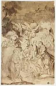 Female Saint Beholding Vision of Christ Child and Saint Joseph
