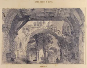 Architectural Ruins with a View of a Garden; Stage design for Giacomo Meyerbeer's opera, "Robert le diable"