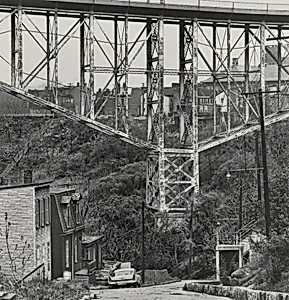 Plowden honed his craft as assistant to O. Winston Link from 1958 to 1959 and studied under Minor White and Nathan Lyons in Rochester from 1959 to 1960, while also assisting George Meluso through 1963. Working in the documentary photography tradition, he produced stark black-and-white images chronicling vanishing facets of American life—steam locomotives like the *Phoebe Snow* at Scranton, Pennsylvania (1964), the Statue of Liberty from Jersey City (1967), steel mills in East Chicago, Indiana (1979), grain elevators, bridges, small-town Main Streets, and Great Lakes steamboats—often one step ahead of demolition.