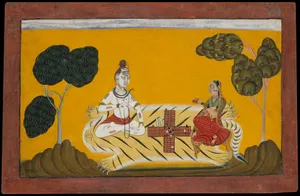 Shiva and Parvati Playing Chaupar: Folio from a Rasamanjari Series