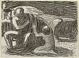 Barlach worked in wood, bronze, and terracotta, preferring the directness and rough vitality of carved or modeled form to polished technical display. His figures — cloaked, hunched, striving or grief-stricken — seem to emerge from some primal condition, their features simplified and their gestures archetypal. This combination of formal reduction and intense expressiveness linked him to the broader Expressionist movement while also reaching back toward the carved saints and mourning figures of late Gothic German sculpture. Major works such as The Avenger, The Beggar, and his war memorial sculptures brought him widespread recognition and controversy in equal measure.