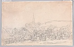 Eugène Louis Boudin was born on July 12, 1824, in Honfleur, Normandy, the son of a harbor pilot. When his family relocated to Le Havre, his father opened a stationery and picture-framing shop, and it was there that the young Boudin first encountered working artists. Artists such as Constant Troyon and Jean-François Millet recognized his talent and urged him toward a career in art. In 1850, a municipal scholarship enabled Boudin to travel to Paris, where he studied in the studio of Eugène Isabey and spent long hours as a copyist at the Louvre.