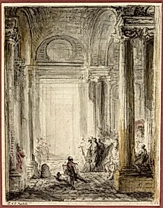 Gabriel Jacques de Saint-Aubin (14 April 1724 – 14 February 1780) was born in Paris into an artistic family — one of fourteen children of the court embroiderer and engraver G.-G. de Saint-Aubin. Art ran deep in the family: his brothers Charles Germain and Augustin de Saint-Aubin were also accomplished artists. Gabriel received his earliest training at home before entering the studios of Étienne Jeaurat and Hyacinthe Collin de Vermont. He also studied under François Boucher, the preeminent decorator of the Rococo age. Despite this rigorous preparation, Saint-Aubin's academic ambitions met repeated frustration — he failed three times to win the prestigious Prix de Rome between 1752 and 1754. Shut out of the Académie Royale, he joined the more open Guild of Saint Luke and charted his own independent course.