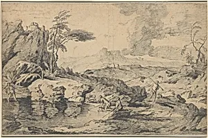 He was famed as a distinguished landscape painter working in Rome in the 17th century, painting decorative frescoes and easel paintings for major Roman patrons, including Pope Innocent X and the Colonna family. He is linked to a new genre of landscape, the storm scene, however his most characteristic works depict the beauty of the scenery around Rome, particularly near Tivoli. He was particularly interested in the shifting patterns of light and shade across a rugged terrain. French landscape painter, active in Italy. Comment on works: Landscapes; History.