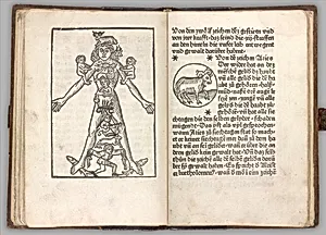 Theuerdank Walking on Swords, from [Theuerdank] Die geuerlicheiten vnd einsteils der geschichten des loblichen streytparen vnd hochberümbten helds vnd Ritters herr Tewrdannckhs
