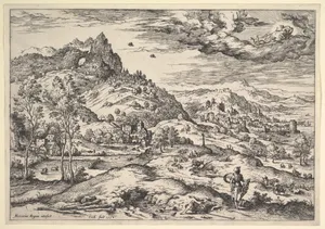 As a painter and etcher, Cock produced around 62 etched plates, blending fantastical Netherlandish landscapes with precise Roman vistas. His 1558 series of 12 landscape etchings drew inspiration from Matthys's paintings, while his circa 1550 Roman ruins series—such as *Ruins of the Baths of Diocletian* and *Second View of the Baths of Diocletian*—captured the grandeur of antiquity with meticulous detail. Cock's Renaissance style bridged Italian High Renaissance motifs with Flemish realism, evident in siege and battle etchings from 1549 to 1558 glorifying Habsburg triumphs. Yet his true innovation lay in publishing: over 1,100 prints disseminated designs by luminaries like Pieter Bruegel the Elder (*Landscape with the Temptation of Christ*, c. 1554), Frans Floris, Lambert Lombard, Maarten van Heemskerck, and even Hieronymus Bosch, engraved by masters such as Philip Galle, Cornelis Cort, and Giorgio Ghisi.