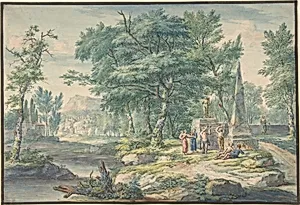 Van Huysum is known for his detailed still-lifes, consisting of luxuriously composed flowers in a classical syle vase, standing on a stone plinth or table, often in a niche. Early works such as Flower Still-life (1706; Hamburg, Kunsthalle), show a traditional, symmetrical pictorial composition. This and other early flower and fruit still-lifes reveal the influence of Cornelis de Heem and Abraham Mignon. The later flower pictures show no apparent symmetry in their arrangement, with almost late Baroque or Rococo compositions. The flower-pieces from van Huysum’s most productive period are presented almost exclusively in an S-shaped arrangement, the only other compositional form being the diagonal—both typical forms of the Rococo. Van Huysum was most famous, however, for the extreme realism of his fruit and flowers, showing extraordinary accuracy of such details as the veins of individual petals, the filaments of the calyxes, dew drops and insects. He often painted tulips, roses, and the crown imperial, a large red flower that came to symbolize the death of Christ. Comment on works: Landscapes; Still Life