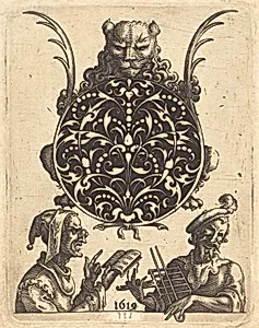 Pendant Shaped like a Beetle with a Couple and a Young Man Playing an Instrument