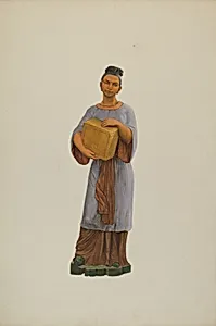 John W. Kelleher was an American artist active from around 1935 to 1953, best known for his contributions to the Index of American Design, a Works Progress Administration (WPA) Federal Art Project that commissioned artists to create precise watercolor renderings of everyday American folk art, crafts, and decorative objects. Little is known about Kelleher's early life or formal training, as biographical details remain scarce, but his work emerged during the Great Depression-era effort to document and celebrate the nation's material culture, particularly through the Massachusetts Project.