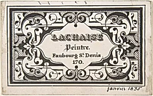 Lachaise's artistic style blended rich, derived ornamentation inspired by Islamic arabesques with Baroque, Rococo, Moorish, and French Renaissance elements, often employing trompe l'oeil effects, putti amid clouds, floral garlands, and architectural illusions to create immersive ceiling and wall designs. His works, executed primarily in graphite, pen and ink, watercolor, and gold paint, adorned grand spaces like the Château de Mouchy's library fireplace (second half of the 19th century), the Hôtel de Beaujon's walls (1872), and the Opéra Comique's decorations (undated). Collaborations with Gourdet yielded standout pieces, including seven vertical panels of Western arabesques for Farnsborough, England (1880–1886)—commissioned for Empress Eugénie's estate—and ceiling designs for the Hôtel Rothschild in Vienna and the Duke d'Albe's dining room in Madrid.