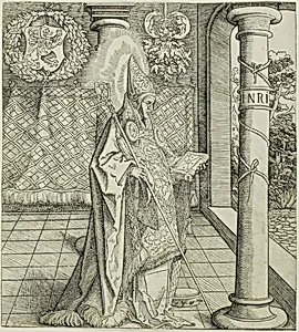 Beck's career peaked through his extensive contributions to Emperor Maximilian I's grandiose propaganda projects, collaborating with artists like Hans Burgkmair and Hans Schäufelein under humanist Conrad Peutinger's supervision. He designed 77 of the 118 woodcuts for the 1517 edition of *Theuerdank*, a chivalric poem celebrating Maximilian, and revised them for the 1519 second edition; produced 126 blocks for *Der Weisskunig* (c. 1514–1516); contributed seven to the *Triumphal Procession*; and created all 123 woodcuts for the *Genealogy of the House of Habsburg* (c. 1516–1518), depicting saintly ancestors like Saint Ita, Saint Leo, and Saint Walpurgis—many of which appear in museum collections today. His woodcut output exceeded 300 sheets, blending intricate narrative detail with heraldic flair.