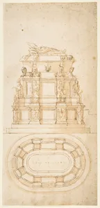 Design for a Freestanding Tomb Seen in Elevation and Plan