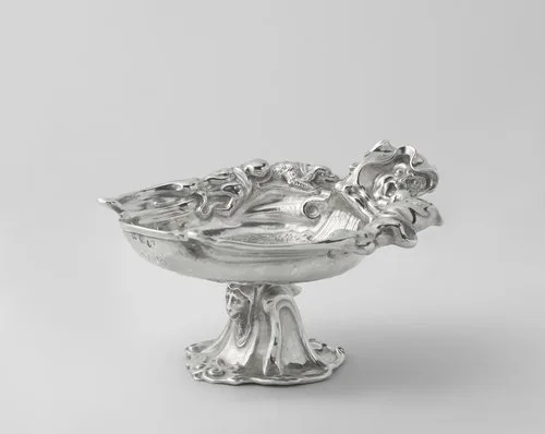 One of his most celebrated works, created in 1635, is a magnificent basin (the matching ewer is now lost) known as the "Silver Dolphin Basin" or "Dolphin Bowl." This remarkable piece, now in the Victoria and Albert Museum in London, exemplifies the auricular style's flowing forms and marine imagery, demonstrating Christiaen's complete mastery of both design and execution.
