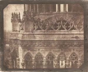 Self-taught in photography amid his scientific pursuits—spanning optics, chemistry, and astronomy—Talbot pioneered the salted paper process, or photogenic drawing, in 1834, creating contact prints of botanical specimens and the earliest surviving camera negative, *The Oriel Window, Lacock Abbey* (c. 1835). By 1840, he discovered the latent image, enabling the calotype (patented 1841), a paper negative-positive system that allowed multiple prints from one exposure, revolutionizing the medium against Daguerre's singular metal plates. Key works include *Articles of Glass* and *Bust of Patroclus* (1843), *The Open Door* and *The Haystack* (1844), and architectural views like *York Minster* and *One of the Towers of Orleans Cathedral* (1843).