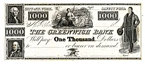 $1000 Bill for The Greenwich Bank, The City of New York by Asher Brown Durand|Durand, Perkins, and Company
