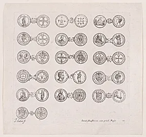 10th Plate, Featuring 16 Coins Issued by European Princes in the 16th and 17th centuries, from Les Monnaies (The Currencies)