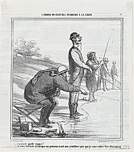 –A bite, what luck! –I forbid you to catch a fish before I do, don't forget, I am your Vice-President!, from 'The fishing club,' published in Le Charivari, January 31, 1866