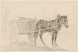 A Cart Drawn by a Brown Horse Near a Lamp Pole; Verso: A Group of Mounted Officers