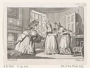 A Drawing Room Altercation, an illustration from Tobias Smollett's "The Expedition of Humphry Clinker" (London, 1793), Vol. 1