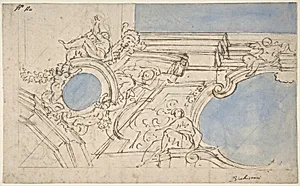 A Foreshortened View of a Ceiling Corner Decorated with Statues, Putti and Garlands