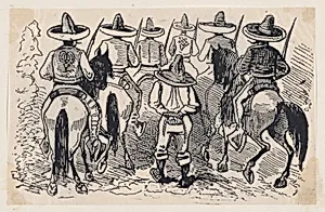 A group of Zapata followers on horseback from a broadside entitled 'Most wonderful miracle by the intercession of Our Most Blessed Lady of Perpetual Help worshipped in Cholula' by José Guadalupe Posada