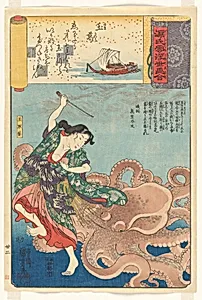歌川國芳画 「源氏雲浮世画合 玉鬘 / 玉取蜑」|“‘A Lovely Garland’ (Tamakazura): Tamatori-ama,” from the series Scenes amid Genji Clouds Matched with Ukiyo-e Pictures (Genji-gumo ukiyo e-awase)