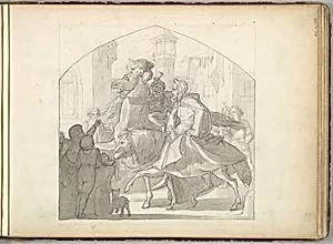 A Man and a Monkey Riding on Horseback (in Sketch Book With Drawings on Twenty-six Leaves)
