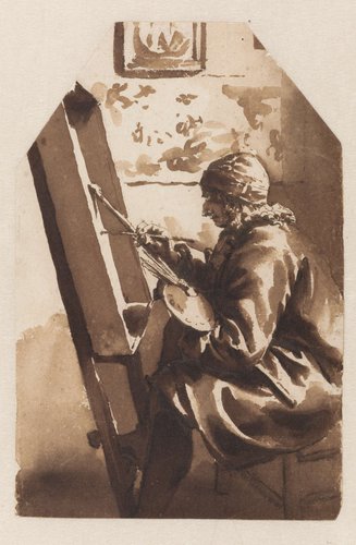 ### A Painter Seated at his Easel Jan de Bisschop's *A Painter Seated at Easel* (1648–1671) captures the quiet intensity of artistic creation during the Dutch Golden Age. Rendered in pen on a modest scale—149 mm high by 99 mm wide intimate drawing showcases de Bisschop (1628–1671), a versatile Dutch draughtsman,, and engraver renowned for his precise line work and copies after Italian masters like Raphael. Here, the artist depicts a figure intently at work, evoking the era's fascination with the painter's studio as a symbol of intellectual labor and rising professional status. The pen medium...