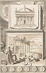 A Reconstruction of the Aedes Concordiae (above) and a View of the Ruins (below)