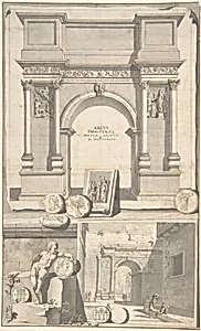A Reconstruction of the Arch of Domitian (above) and View the Ruins (below)