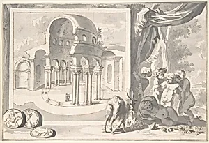 **A Reconstruction of an Undefined Building** by Jan Goeree, created before 1704, invites visitors into the imaginative world of Dutch late Baroque draughtsmanship. This delicate drawing, measuring 5 3/16 x 7 11/16 inches (13.2 x 19.5 cm), employs pen and black and brown ink, brush and gray wash over red chalk—a layered technique that builds texture and depth. Housed in the Metropolitan Museum of Art's Department of Drawings and Prints, it was a generous gift from Helen and János Scholz in 1958. The composition centers on a fanciful reconstruction of an ambiguous architectural form, blending ...