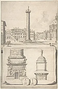 A View of the Column of Trajan (above) with Details (below)
