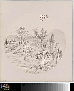 "Albumblad" by Hui Nian, created between 1850 and 1900, is a delicate ink landscape painting on an album leaf measuring 33 cm high by 66 cm wide. This intimate format, typical of Chinese album art, invites viewers to savor intricate scenes up close, as if flipping through a personal collector's treasure. Rendered in flowing ink washes, the composition captures the timeless essence of shan shui (mountain-water) painting, evoking peaks, winding rivers, and serene expanses that transport us to an idealized natural world. This leaf belongs to a pair of albums featuring 24 landscapes, each emulati...