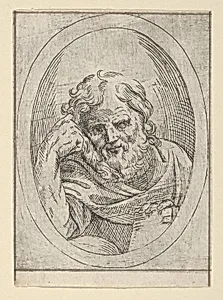 An apostle resting his head on his right hand and holding a book, in an oval frame, from Christ, the Virgin, and Thirteen Apostles