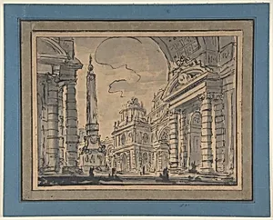 An Architectural Capriccio; a View Through a Great Arch with an Obelisk in a Piazza in the Middle Distance