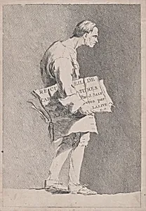 Step into the satirical world of18th-century Paris with *An Artist at the French in Rome (?)**, plate I from the *Recueil de caric*, an etching created around 1754 by Jacques François Saly, with ties to the prominent art patron Ange-Laurent de Live de Jully. playful caricature likely pokes fun at a fellow artist immersed in the rigorous life of the Académie de France in Rome, the elite training ground for France's top young talents who won the prestigious Prix de Rome. Saly, a skilled sculptor himself, captures the exaggerated quirks of artistic dedication with sharp wit, reflecting the compet...