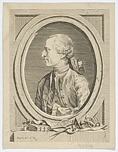 This elegant etching, titled *Antoine de Ché* by French artist Louis Jean Despre (1743–1804), the profile of its scholarly subject in a classical pose, dating to around 1772–76. Created during the late Enlightenment era in France, when intellectual portraits celebrated thinkers and scientists, the work exemplifies Desprez's skill as a draughtsman and printmaker. Measuring just 8 9/16 × 6 9/16 inches, its intimate scale invites close viewing, revealing the precision of etched lines on a metal plate, a technique that allowed artists like Desprez to achieve delicate shading and expressive contour...