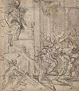 Apparition of Christ (recto); Printed Fragment with Jupiter Enthroned with Eagle, from Caraglio's Martyrdom of Saint Peter and Saint Paul (verso)