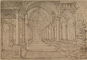 Architectural Capriccio with an Arcade and Fountain in Point Perspective [Study for a Painting of John the Baptist before Herod]