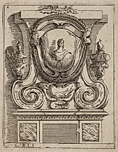 Architectural Motif with Bust and Two Lamps
