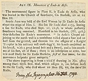 Art. IX. Monument of Eudo de Arsic (from, "The Topographer," no. XII, 1790)