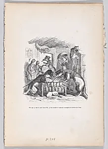 Step into the whimsical world of 19th French satire with *"As soon as I set on the island..."*, wood engraving from J.J. Grandville's *Scenes from the Private and Public Life Animals* (ca. 1837–47), text by Honoré de Balzac. Grandville, a master caricaturist, collaborated with literary giants like Balzac to create anthology, which anthropomorphizes animals to lampoon human foibles in politics, society, and daily life. Published during France's July Monarchy, the series captured the era's social commentary through fantastical vignettes, blending humor with sharp critique. This intimate sheet (...