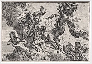 Autumn: allegorical scene with figures seated on clouds with a bull and ram