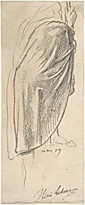 Back View of a Draped Male Figure Holding a Staff